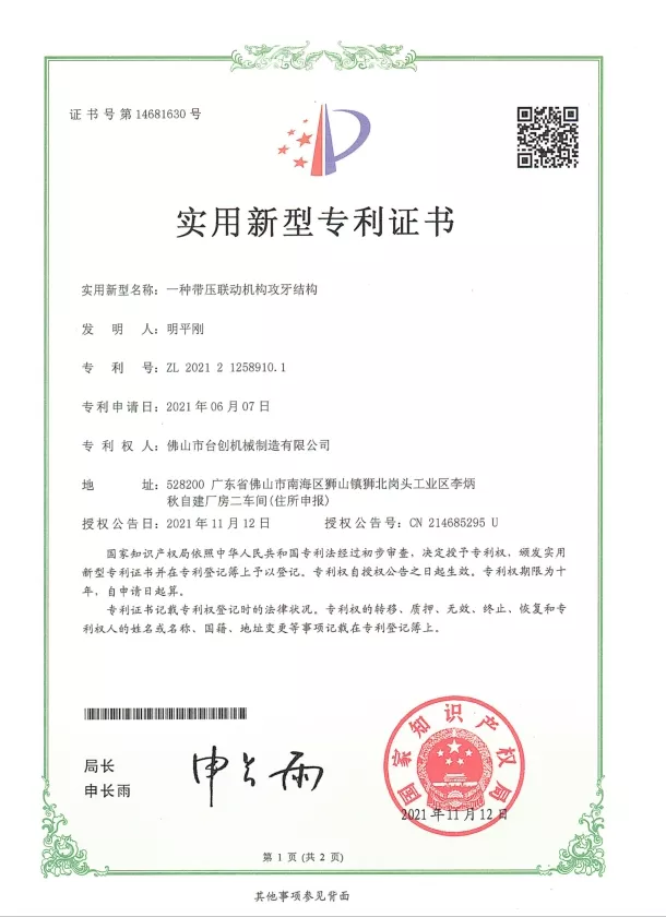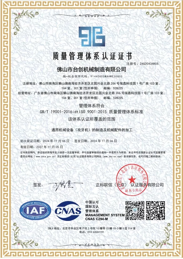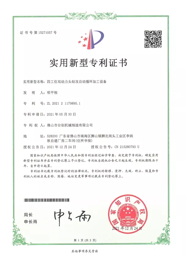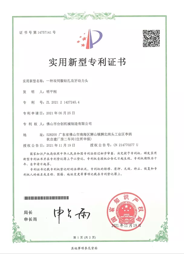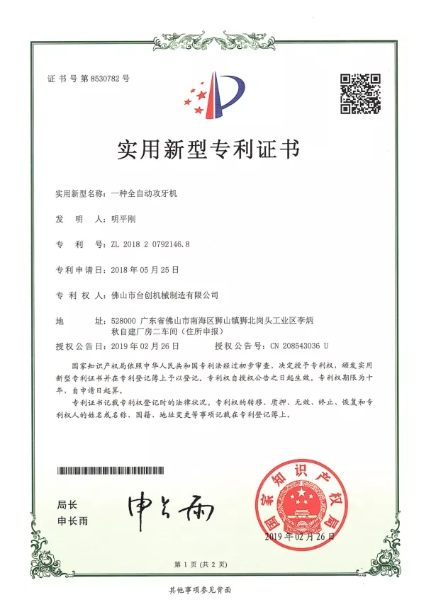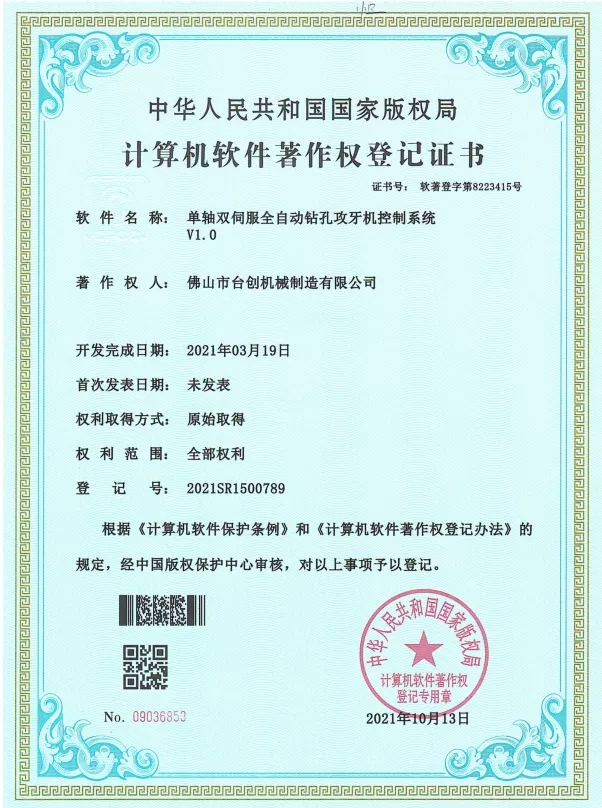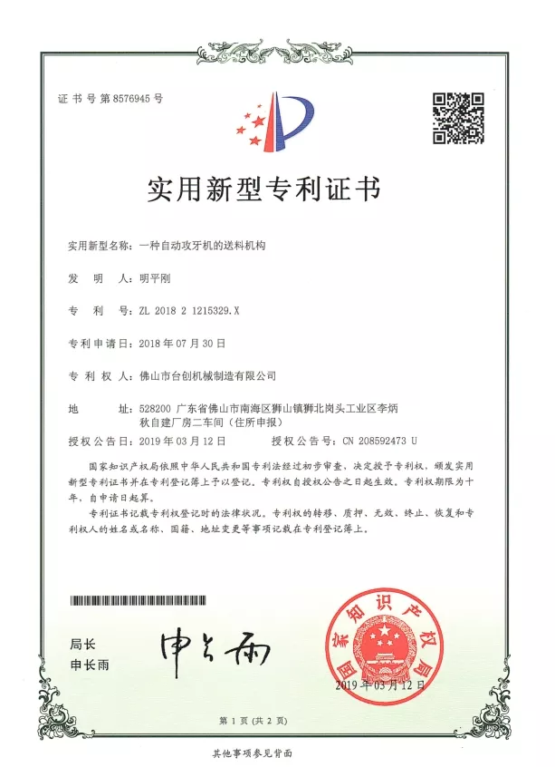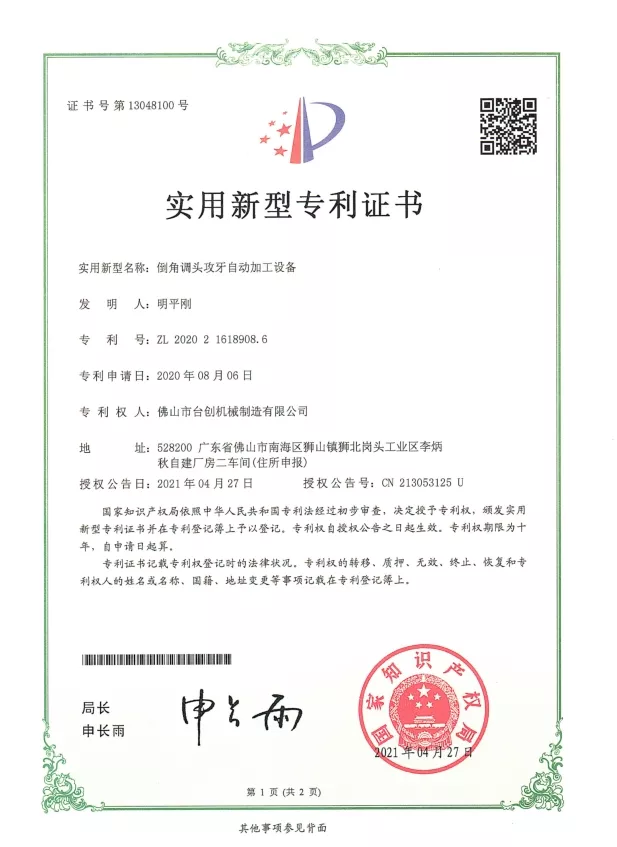 Patente und Innovation: Wir halten zahlreiche Patente für unsere Mutterngewindeschneidmaschinen-Technologien, die mechanisches Design, Automatisierungssysteme und Sicherheitslösungen umfassen. Kontinuierliche Forschung und Entwicklung stellen sicher, dass unsere Maschinen hohe Präzision, Stabilität und Effizienz bieten. Innovationen werden in CNC-Systemen, Servoantrieben, Drehmomentüberwachung und automatischer Materialhandhabung eingesetzt, um den sich ändernden Anforderungen der modernen Fertigung gerecht zu werden.