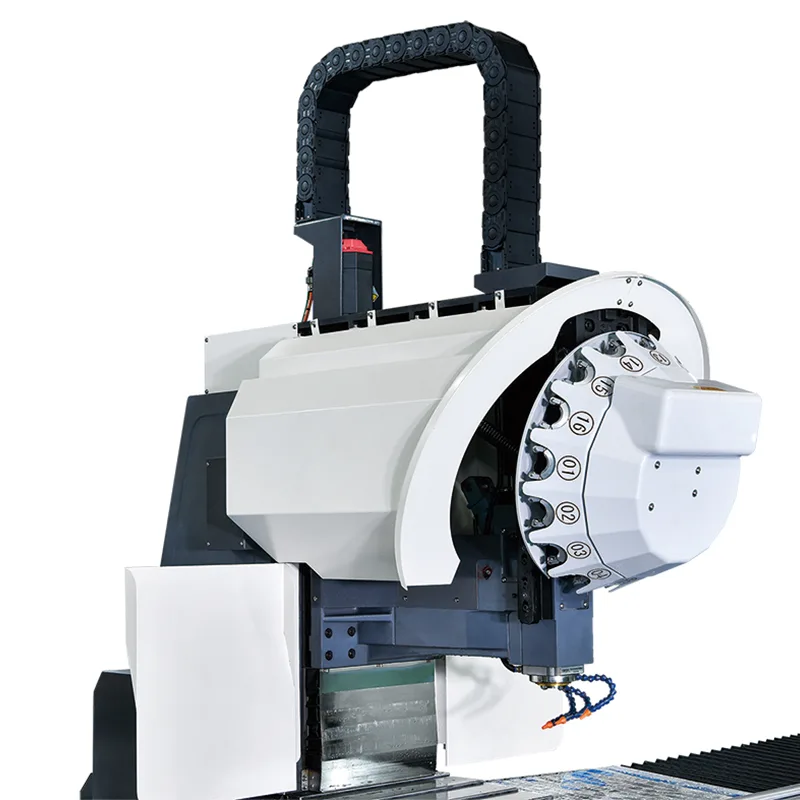 Das Fahrständer-Portalbearbeitungszentrum eignet sich besonders für Anwendungen mit langen Platten, Strukturrahmen, Formen und Industriemaschinenkomponenten. Mit seinem verlängerten Bearbeitungsweg und der stabilen mechanischen Architektur unterstützt das System die effiziente Bearbeitung großer Werkstücke bei gleichbleibender Maßgenauigkeit.
